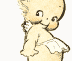 新しい物語を構想していたローズオニールは、ある夜夢をみました。彼女のまわりを妖精のようなものが飛び回っていました。ひとりが小鳥のようにオニールの腕にとまりました。冷たい感覚がしましたが、すぐに彼らがそのおなかのようにまんまるい暖かなハートを持っていることがわかりました。そしてかれらが、哲学そのものであることを理解しました。この夢を見たあと、オニールは早速キューピーの絵物語の創作にかかり、アメリカの婦人雑誌「レディースホームジャーナル」12月号に発表されました。これがキューピーの誕生です。 |
